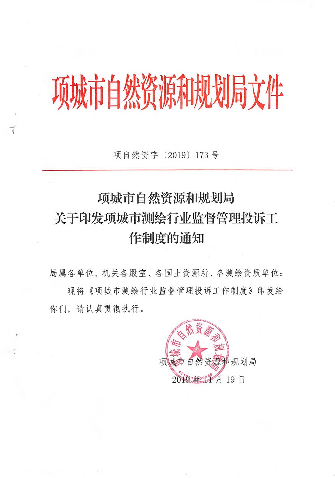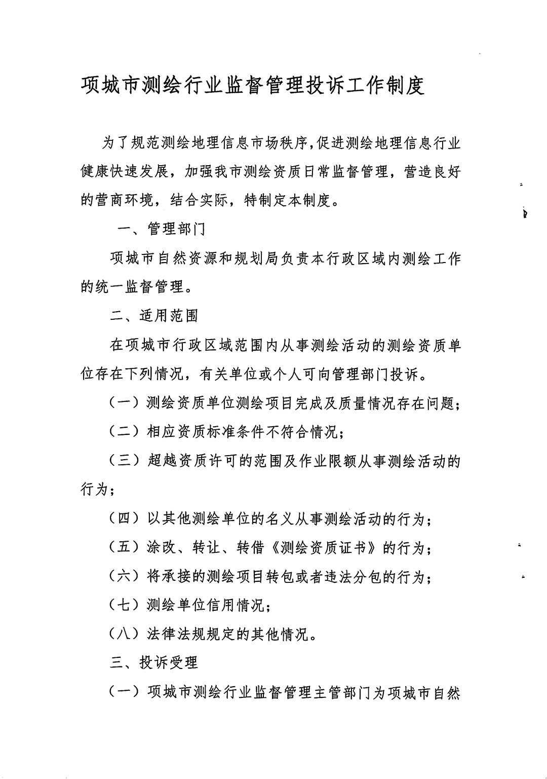 关于印发项城市测绘行业监督管理投诉工作制度的通知