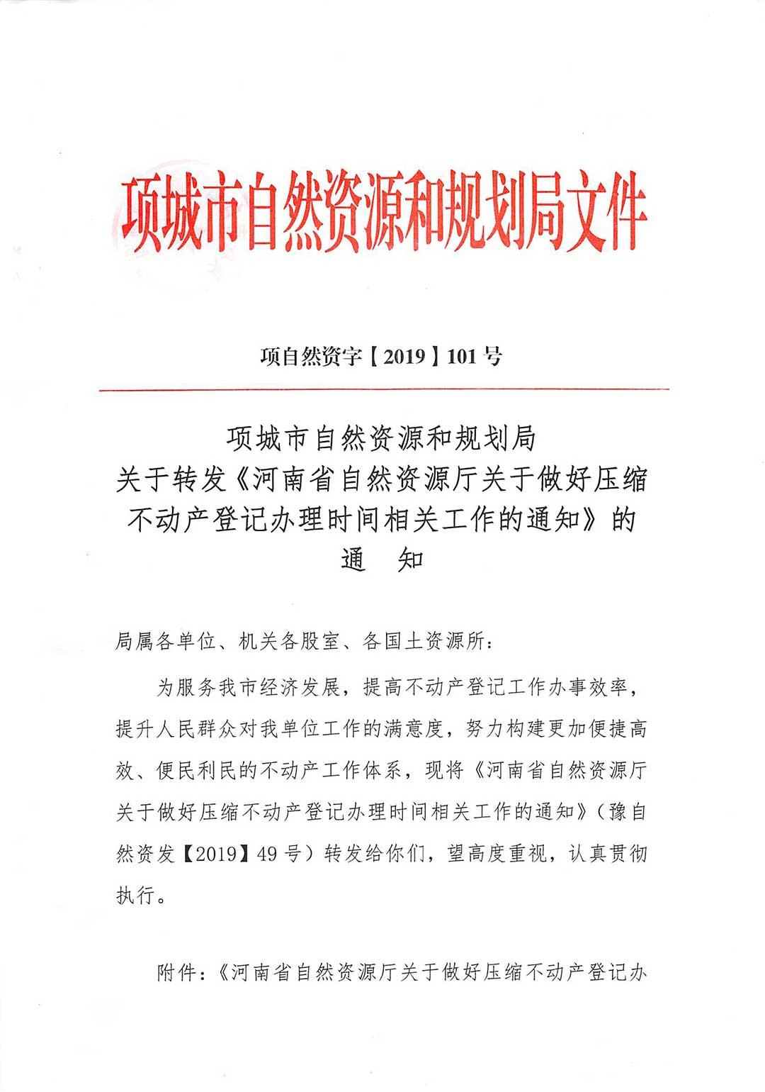 关于转发《河南省自然资源厅关于做好压缩不动产登记办理时间相关工作的通知》的通知