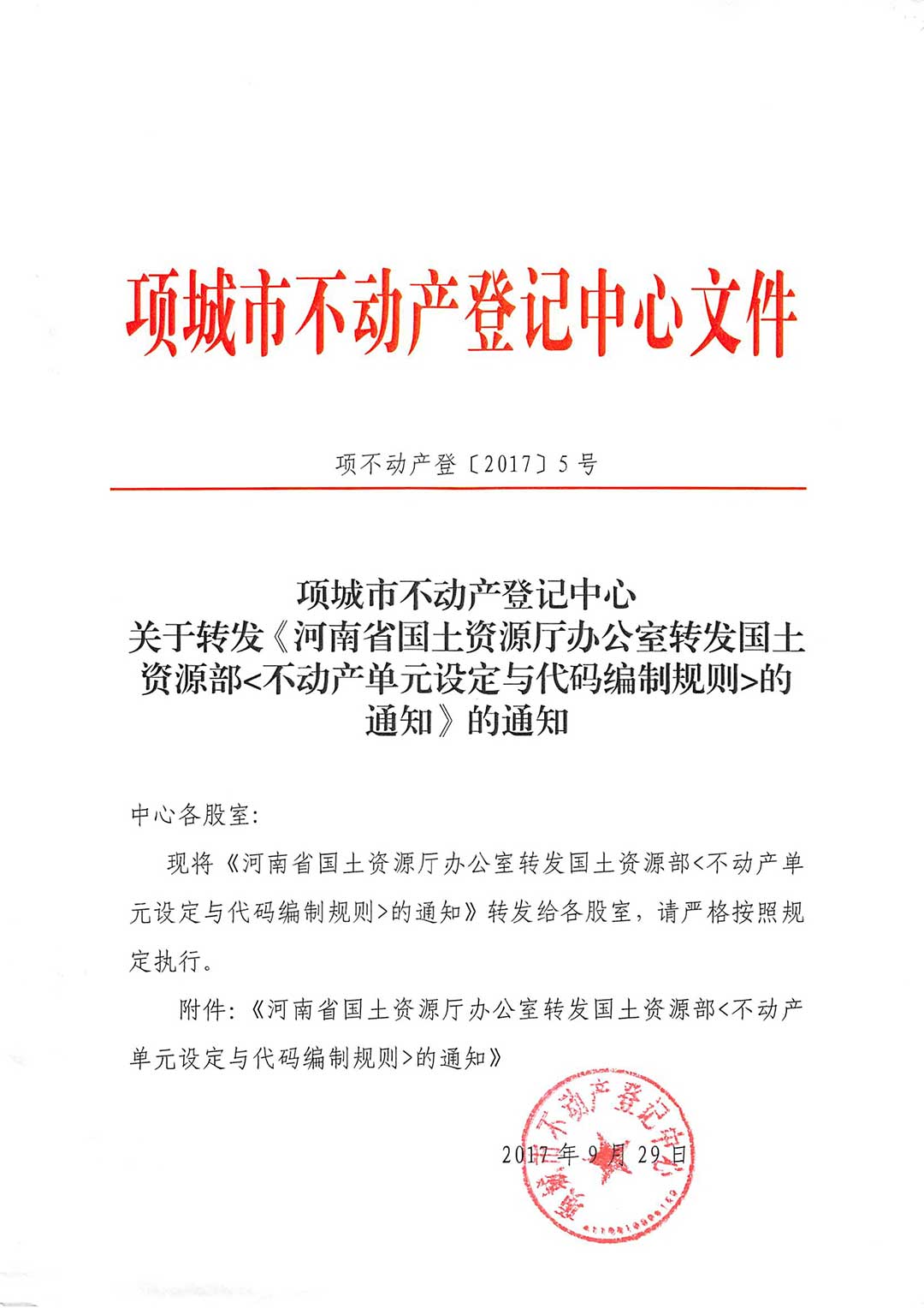 关于转发《河南省国土资源厅办公室转发国土资源部(不动产单元设定与代码编制规则)的通知》的通知