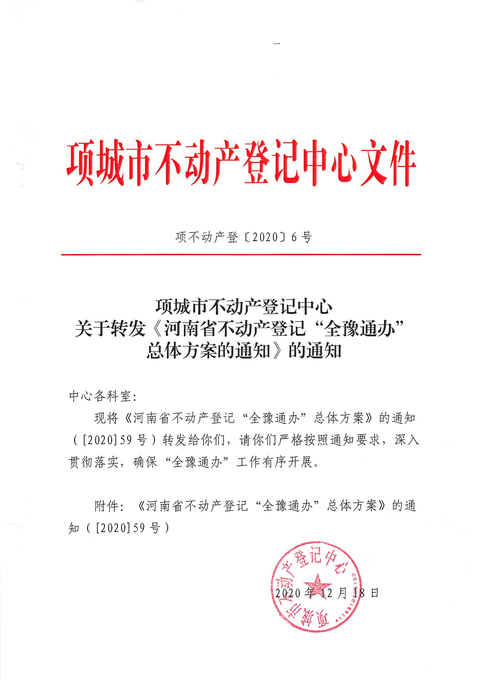关于转发《河南省不动产登记“全豫通办”总体方案的通知》的通知